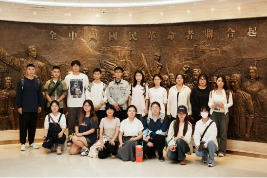 支部师生在《全中国国民革命者联合起来》浮雕前合影