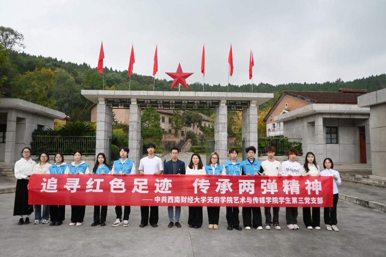 为深化党性教育、传承红色基因,厚植强国有我的使命担当,进一步开展好“两弹一星”精神的宣讲,10月30日,艺术与传媒学院学生第三党支部组织师生前往绵阳市梓潼县两弹城开展“追寻红色足迹·传承两弹精神”红色研学活动,教师党员丁世建、周莉、刘幸,“两弹一星”青年宣讲团“阡陌行者”和“盈见青心,核舟共济”成员及入党积极分子共17人参与此次活动。