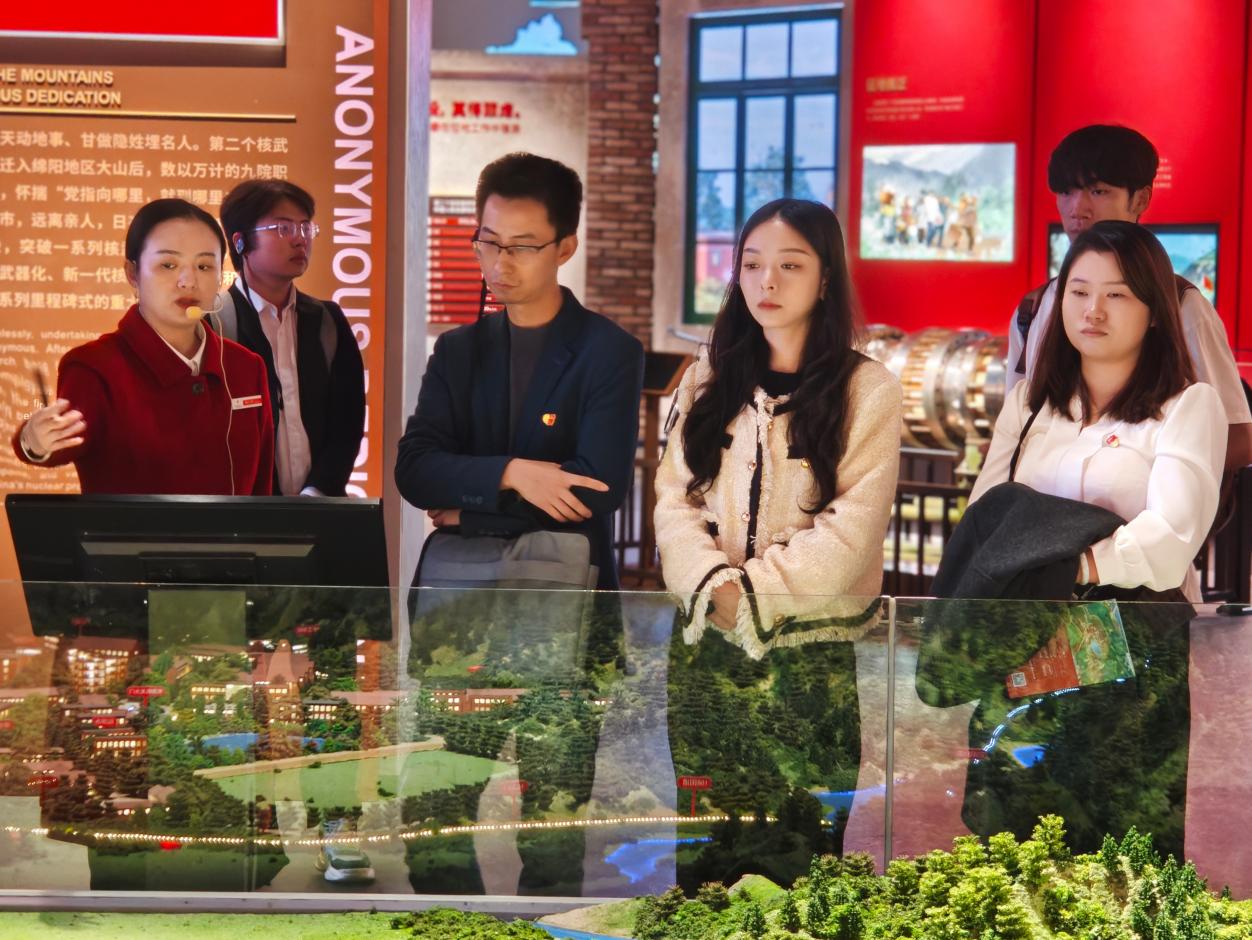 参观“两弹城”沙盘并与讲解员交流