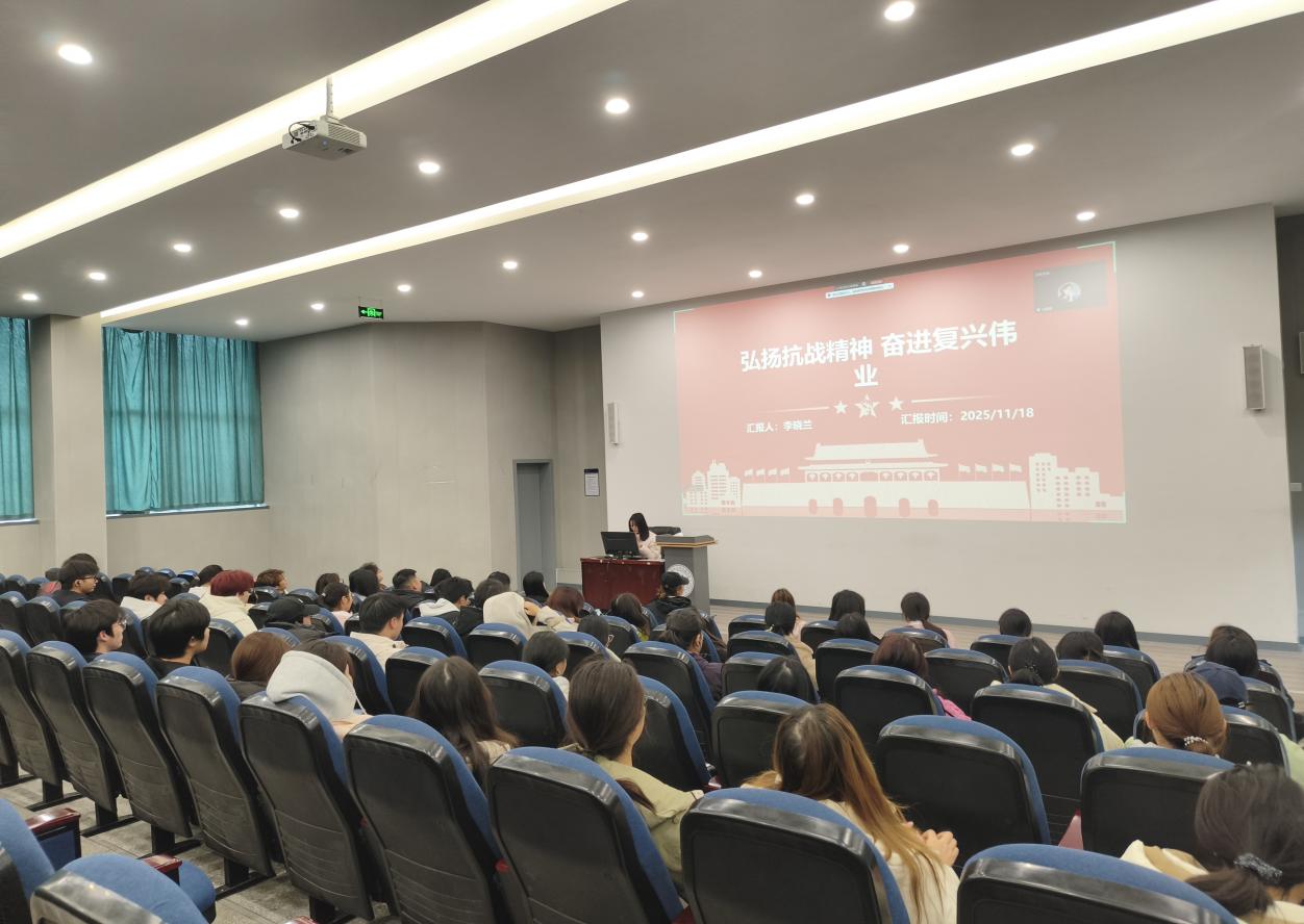 在主题分享环节,三位主讲人分别从不同视角阐释了抗战精神的当代价值。冷佳莲以“数字视角下的抗战记忆”为题,借助史料数据库中的家书与影像,解读了“天下兴亡,匹夫有责”的爱国情怀,并呼吁大家以专业所学服务社会;李晓兰聚焦“从抗战精神到创新攻坚”,通过我国科研工作者突破“卡脖子”技术的实例,生动阐述了“不畏强暴,血战到底”的英雄气概对当代青年攻坚克难的启示;黄莎莎则以“青春赛道上的精神传承”为主线,结合学生党员参与乡村振兴、社区服务的真实故事,提出青年一代应以“百折不挠,坚忍不拔”的奋斗精神扎根基层、勇担使命。
