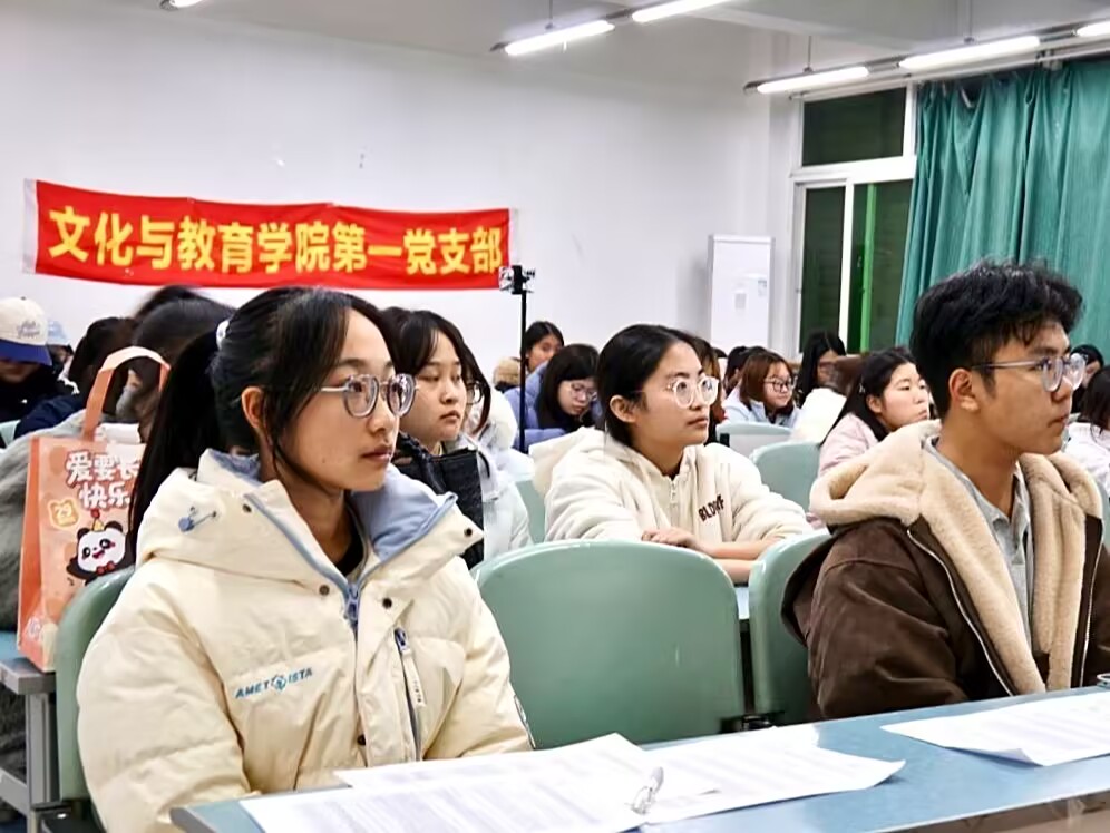 为深入学习贯彻党的二十届四中全会精神,引导学院青年准确把握“十五五”规划的核心要义,自觉将个人发展融入国家大局,文化与教育学院第一党支部于11月19日晚在二教2305教室及企业微信开展了以“学习贯彻党的二十届四中全会精神,为实现‘十五五’规划目标努力奋斗”为主题的十一月主题党课。本次党课由文化与教育学院辅导员彭金艳老师主讲,第一党支部全体党员、入党积极分子和入党申请人共同参与。