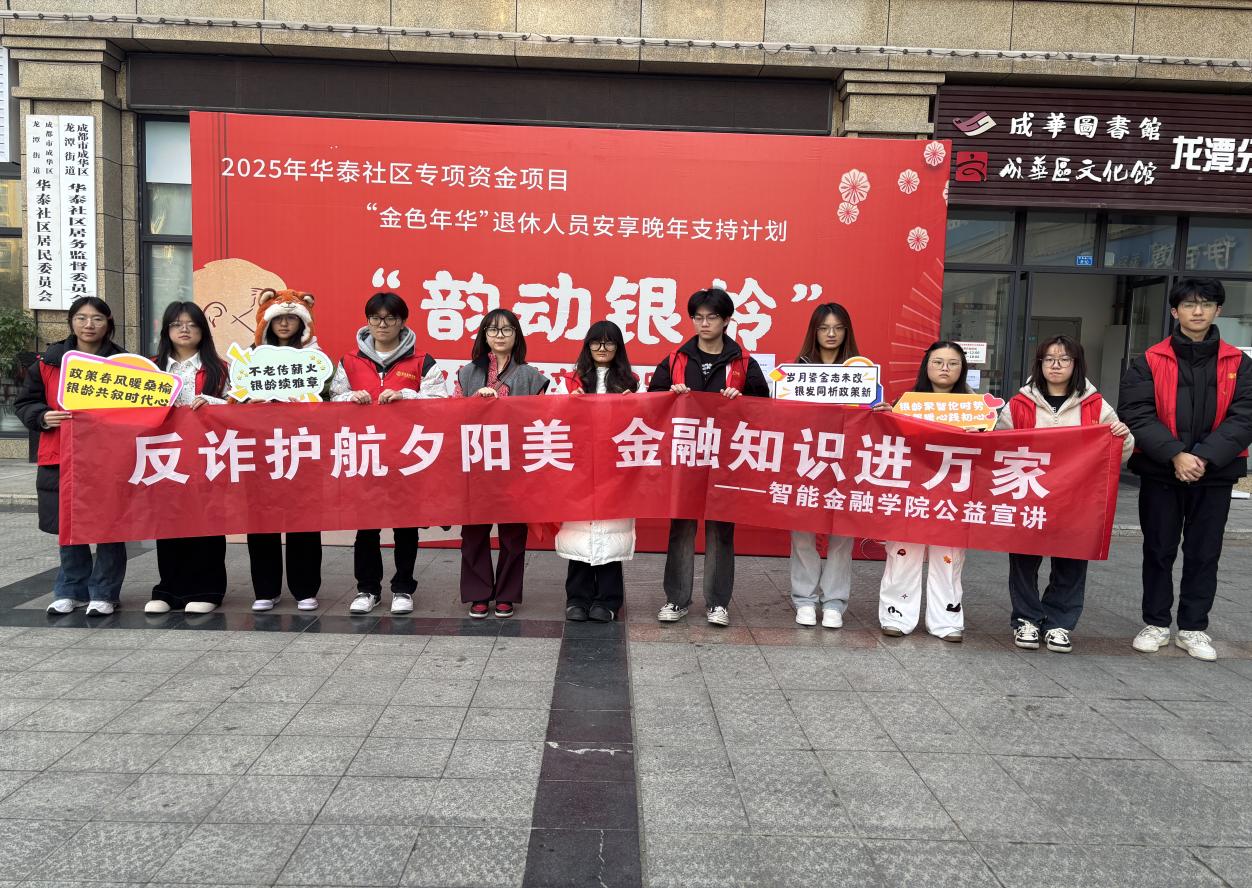 12月10日,智能金融学院第一党支部走进成都市成华区华泰社区党群服务中心,成功举办“反诈护航夕阳美·金融知识进万家”主题公益宣讲活动。第一党支部书记刘佳带队,主讲人王子萌通过“知识宣讲+传统文化+趣味互动”的创新形式,将金融反诈知识送到居民身边。