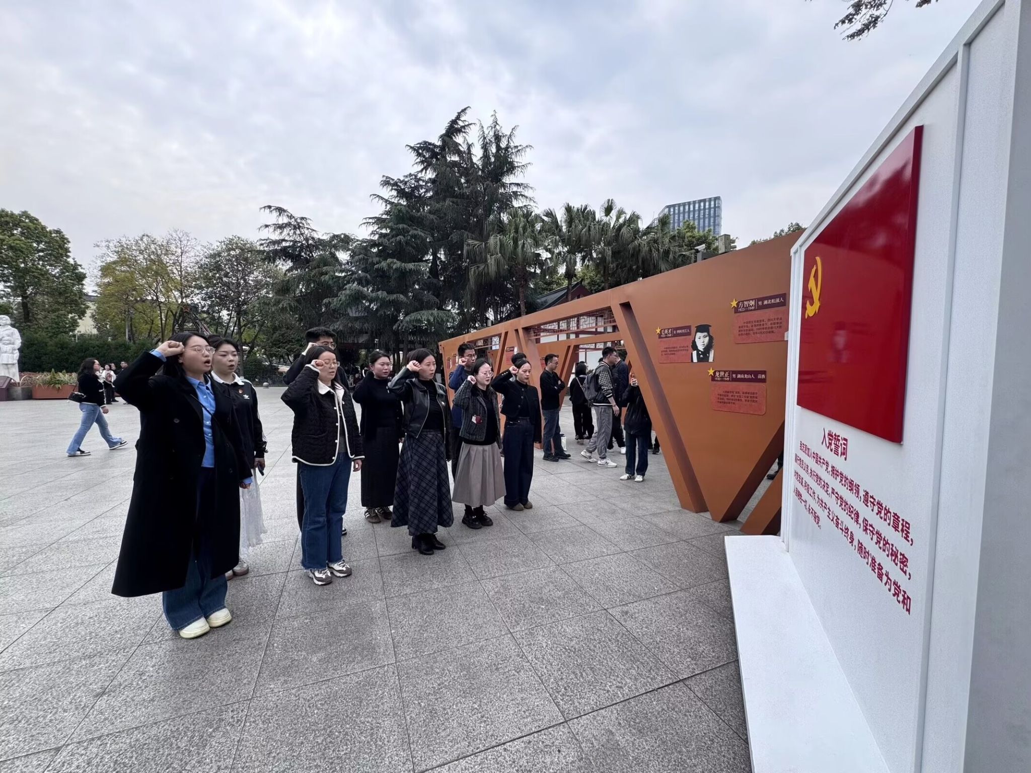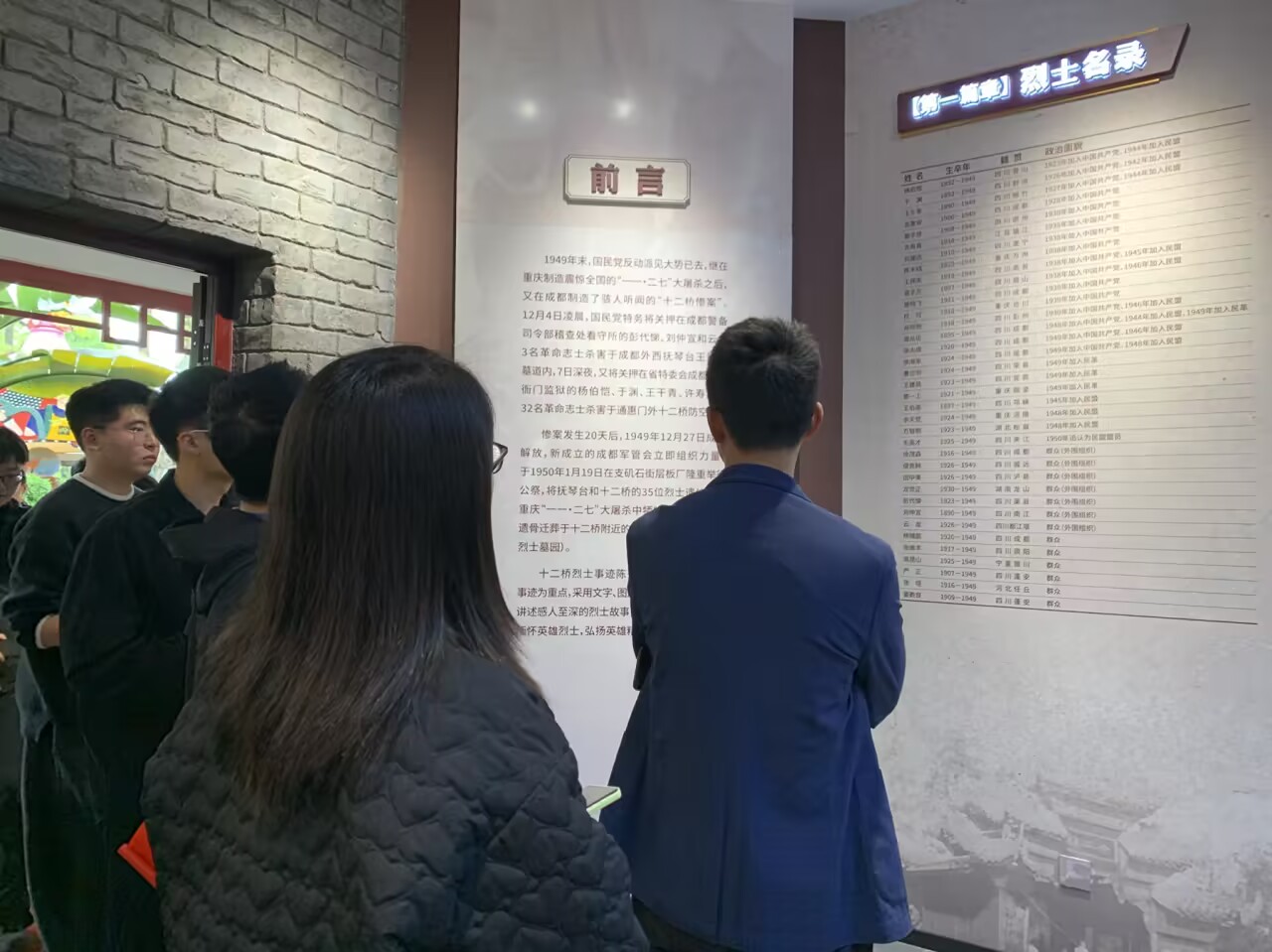 随后,在烈士事迹陈列馆内,师生通过历史图片、文献资料和实物展品,回顾十二桥烈士的革命历程与英勇事迹,直观感受革命年代的艰苦卓绝与牺牲精神。彭雯秀指出,全体参与人员要以此次祭扫活动为契机,铭记革命历史、筑牢信仰之基,自觉从英烈精神中汲取奋进力量,把爱国情、强国志、报国行融入学习生活,以实际行动扛起新时代青年党员的责任与担当。