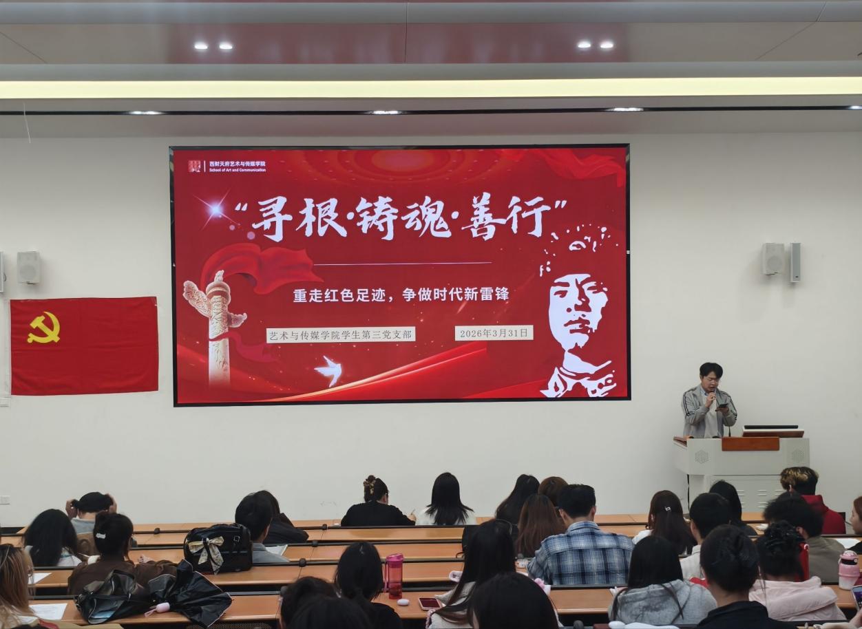 为传承红色基因、赓续精神血脉,弘扬新时代雷锋精神,推动党史学习教育与志愿服务实践深度融合,3月31日,艺术与传媒学院学生第三党支部在成都校区(东区)教学楼139教室举办“重走红色足迹,争做时代新雷锋”红色研学分享会。支部全体党员、入党积极分子参加会议。