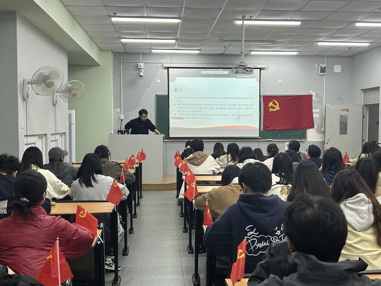 为深入学习中国共产党在抗日战争中的中流砥柱作用,传承和弘扬伟大抗战精神,引导师生从历史中汲取奋进力量,10月28日,智能金融学院第二党支部在成都西区1-215B教室组织开展10月党课学习活动。本次党课由智能金融学院第二党支部副书记盛祺主讲,第二党支部全体党员和部分入党积极分子共同参与。