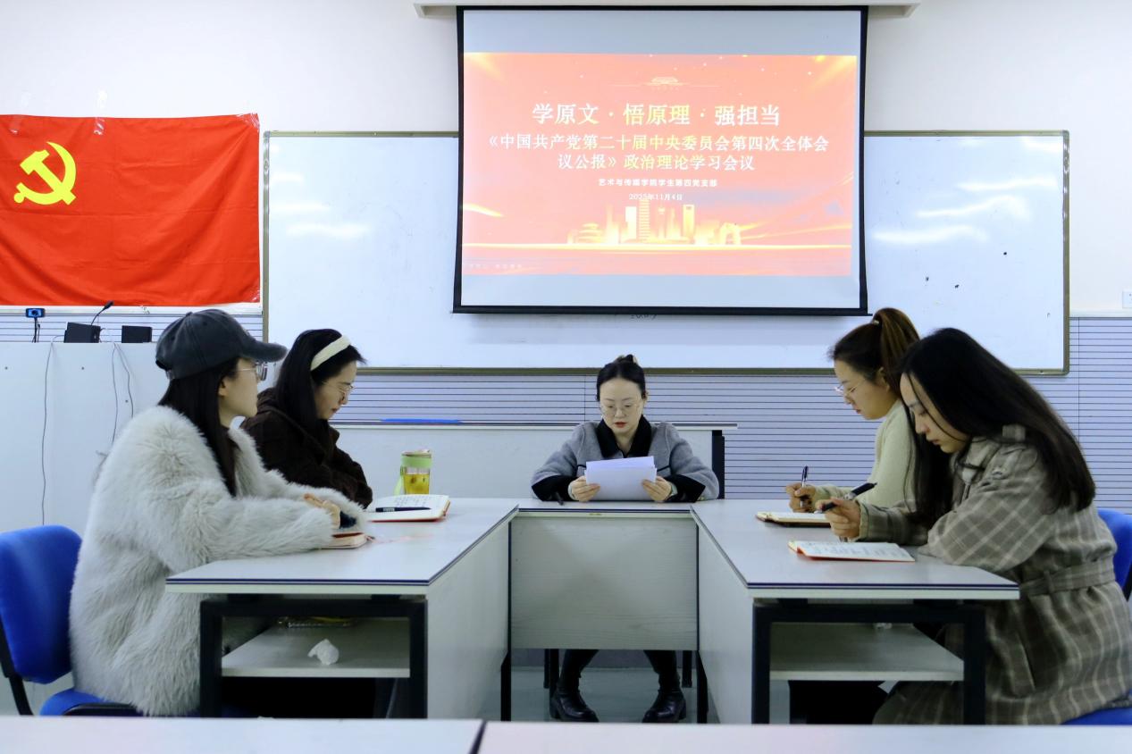 为深刻领会党的二十届四中全会精神实质,切实将思想和行动统一到党中央决策部署上来,11月4日下午,艺术与传媒学院学生第四党支部召开专题政治理论学习会议,集中学习《中国共产党第二十届中央委员会第四次全体会议公报》,本次学习会议由支部书记陈思主持,深入解读全会核心要义与实践要求。