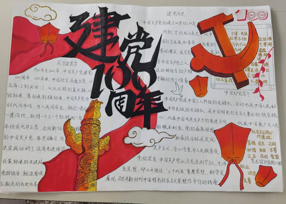 下午4时,学校组织开展了以“党史一百年”内容为主题的手抄报创作。本期入党积极分子以小组为单位,通过手抄报的形式,结合所学党史以及对党的知识的理解,创作和表达了他们参加党校学习后的体会以及对党的诚挚祝福。