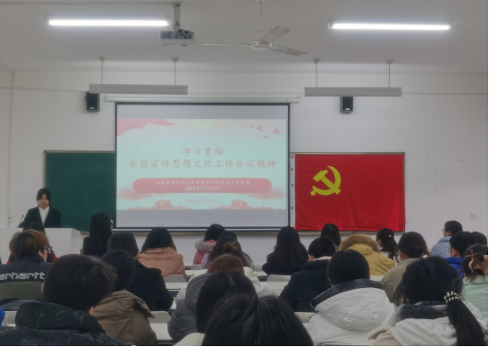 为深入学习领会习近平文化思想,切实提升宣传思想文化工作实效,12月13日中午,会计学院第三党支部于德阳校区F302和F303教室开展了以“学习贯彻全国宣传思想文化工作会议精神”为主题的十二月主题党日。此次会议由教师党员施琴和徐海清同志主讲,会计学院第三党支部全体师生党员、入党积极分子参加。