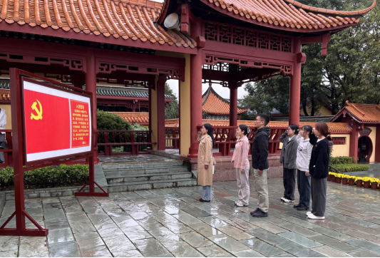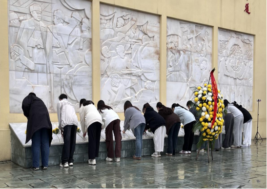 英雄精神炳千秋,今朝承志助兴国。在纪念馆参观环节圆满结束后,所有党员同志在纪念馆的广场上,庄严地重温入党誓词,随后全体师生向特级英雄黄继光敬献鲜花,以此表达他们深深的敬意。