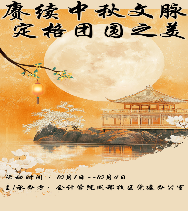 为传承中秋文化,增强文化自信,10月1日至10月4日,会计学院(成都校区)党建办公室聚焦中华优秀传统文化传承,面向全体党员及入党积极分子开展“赓续中秋文脉,定格团圆之美”中秋节主题活动。