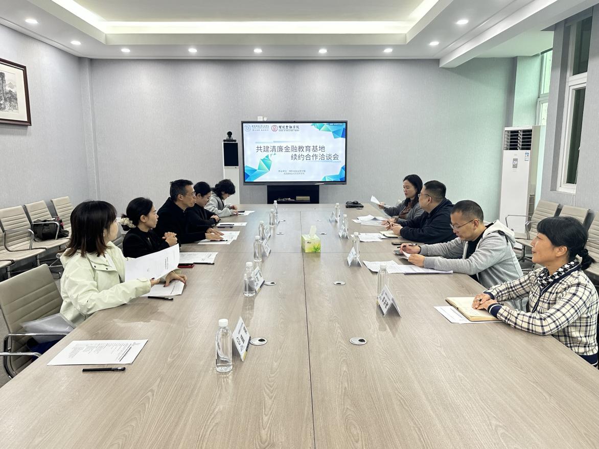 洽谈会上,李道波详细介绍了学校、学院的发展概况及清廉金融教育前期活动开展情况。作为川内金融教育领域的重要力量,智能金融学院依托学校优质教育资源,在金融人才培养、行业协同创新等方面成果丰硕。自清廉金融教育基地共建以来,双方充分发挥各自优势,将廉洁教育融入金融人才培养全过程,通过开设专题课程、举办讲座论坛、开展实践调研等多种形式,有效提升了学生的廉洁意识和行业素养,为金融行业输送了一批兼具专业能力与道德操守的复合型人才,得到了行业内外的广泛认可。刘宇发表致辞,他表示,基地的建立为金融监管部门与高校搭建了高效的沟通协作平台,不仅助力高校精准对接行业需求、优化人才培养方案,更通过将监管实践与廉洁教育相结合,从源头防范金融风险、净化行业生态。冯光芬就协会基本情况进行了补充介绍,并汇报前期活动组织的主要形式和成效。随后,刘秀结合学院的具体情况,从培育中国特色金融文化的角度,充分肯定了清廉文化教育在金融人才培养中的重要作用,并提出要大力做好经验的总结和成果的提炼,打通线上渠道,扩大辐射面和影响力。围绕续约后的合作方向,双方从教材引进、科研共建、党建结对等方面展开了深入探讨,并达成广泛共识。