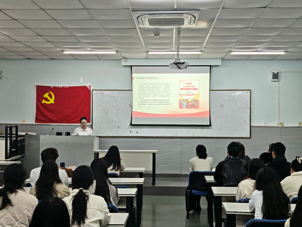 党课伊始,陈思首先从历史维度梳理民族融合的历程:从先秦时期的交融格局,到各个朝代迁徙流动中形成的“大杂居、小聚居”分布,各族群在中华大地上逐渐形成“你中有我、我中有你”的命运共同体。同时,大一统信念与各民族文化的互鉴融通,更让这种共同体意识成为穿越历史的精神纽带。活动中,入党积极分子刘宏兴表示,作为新时代大学生,要牢记党的宗旨,坚定理想信念,密切联系身边同学,用自己的实际行动为铸牢中华民族共同体意识贡献自己的一份力量。