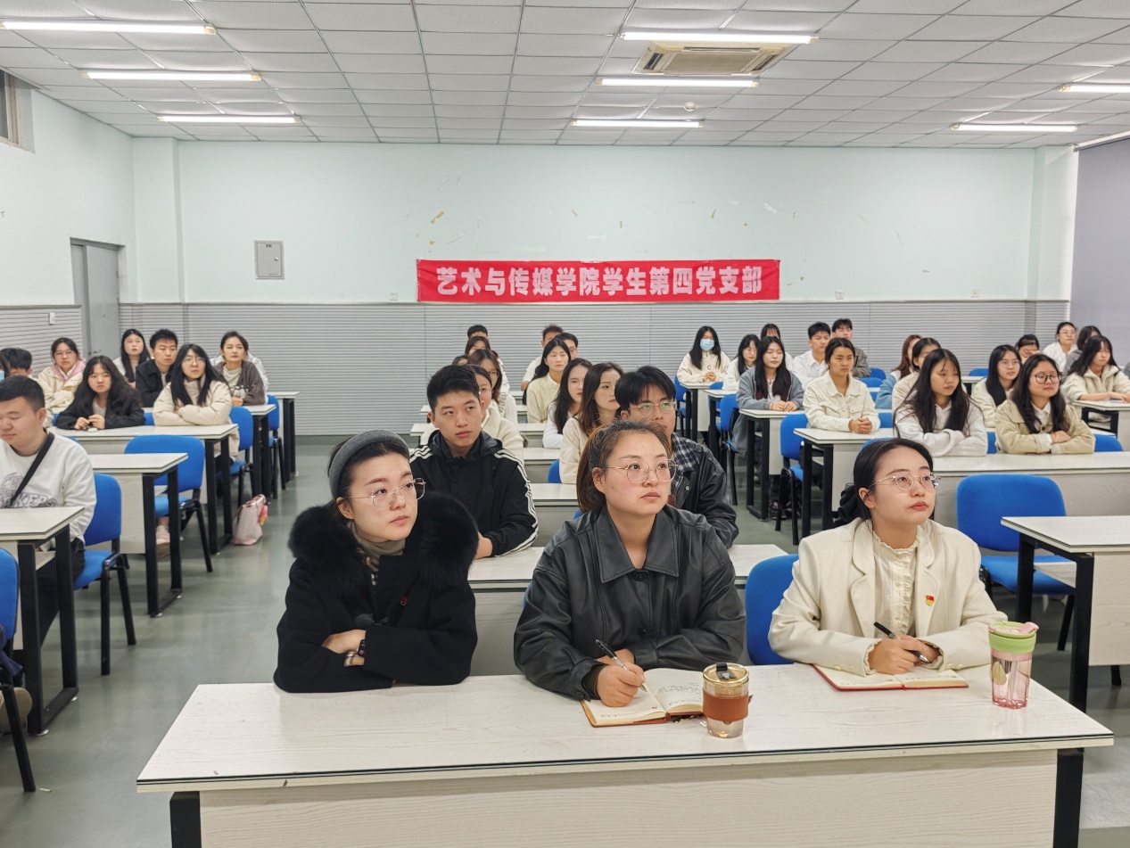 为引领新时代青年,深入学习习近平总书记重要讲话精神,铸牢中华民族共同体意识,10月28日下午,艺术与传媒学院学生第四党支部组织全体学生党员、预备党员、入党积极分子于成都校区(东区)L5-238教室开展了“凝心铸魂固本,聚力同心共建,筑牢中华民族共同体意识”主题党日活动,学院学生第四党支部书记陈思主持本次主题党日活动。