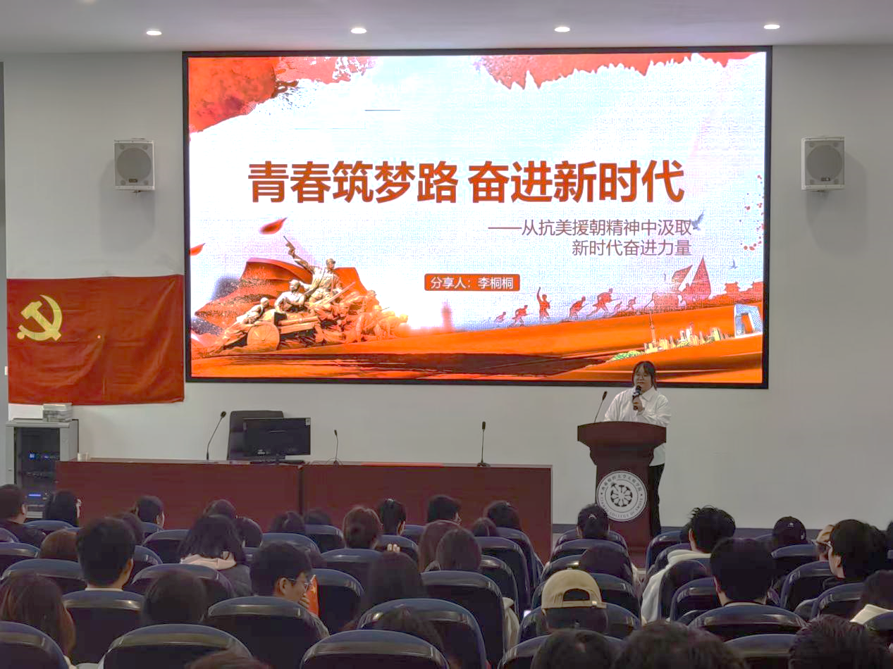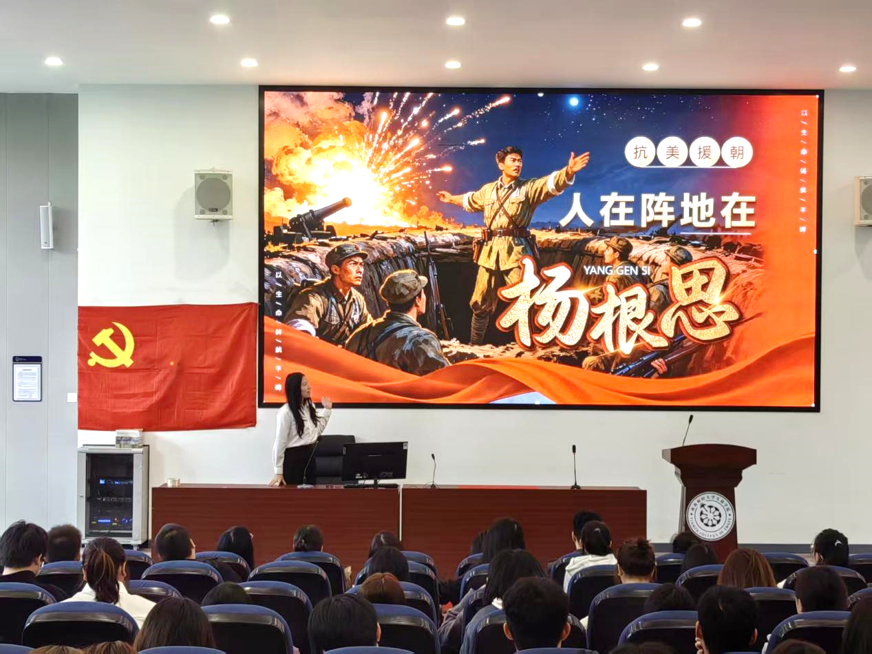 活动伊始,苟明娇阐述了抗美援朝的时代意义,她指出,铭记抗美援朝历史,不仅是为缅怀舍生忘死的革命先烈、致敬保家卫国的英雄儿女,更是为从峥嵘岁月中汲取精神养分,凝聚奋进力量。随后,苟明娇结合历史背景与时代语境,深入解读抗美援朝精神的核心内涵,强调青年党员和入党积极分子要以英雄为标杆,坚定理想信念,将精神力量转化为学习科研、服务社会的实际行动。