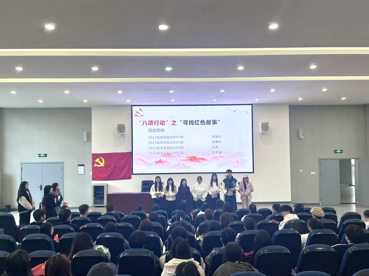 随后,学院分党委副书记马俊为上台分享的学生颁发奖励,同时为在支部“八项行动”之“寻找红色故事”中获奖的入党积极分子颁奖,2023级本环境设计专业邓崇杰、2023级本环境设计专业张馨雨、2023级本环境设计专业汪莉、2023级本产品设计专业陈思静,凭借优质的红色故事作品呈现获此奖励。颁奖环节后,全体参会人员起立致敬,齐声高唱《中国人民志愿军战歌》,在场师生重温了抗美援朝战争时期志愿军将士浴血奋战的峥嵘岁月,更坚定了传承红色血脉、勇担时代使命的信念。