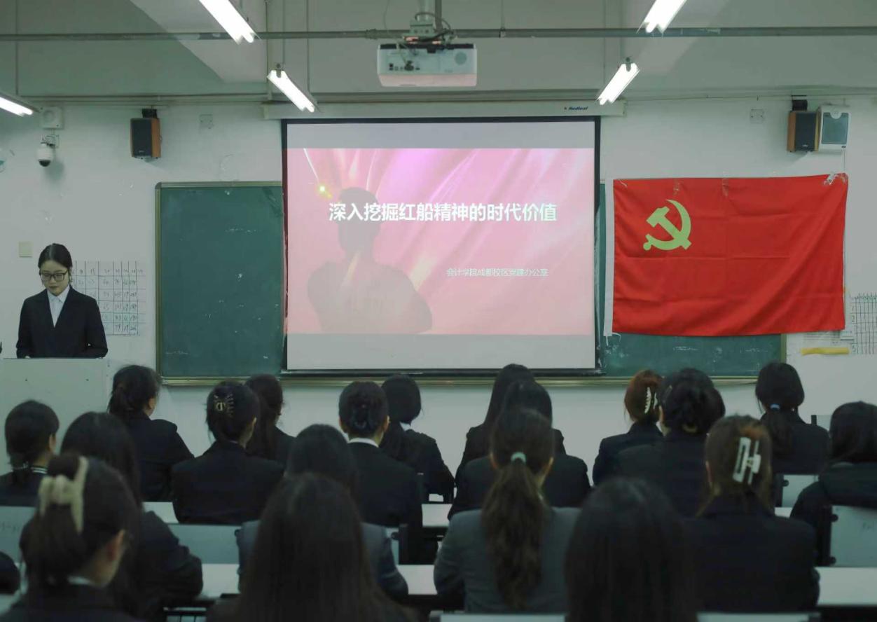 为追溯红色根脉,深刻领会红船精神的核心要义与时代价值,引导青年党员与入党积极分子筑牢思想根基、践行初心使命,11月10日,会计学院(成都校区)党建办公室组织的【青年·学】系列活动之“深入挖掘红船精神的时代价值”读书班专题学习活动在503教室顺利开展,本次活动共计50名党员和积极分子参与。
