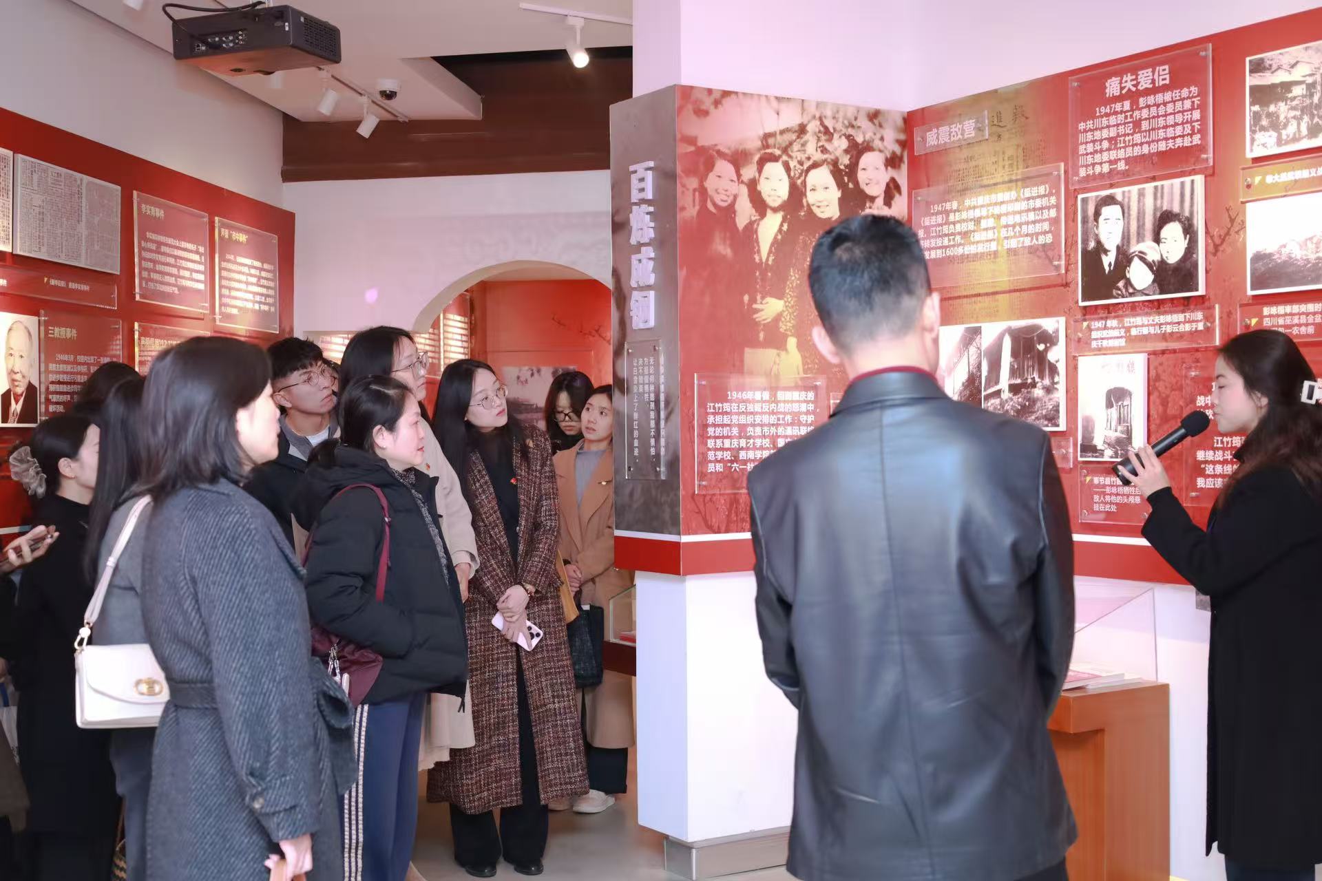 为深入学习贯彻党的二十届四中全会精神,扎实开展中央八项规定精神学习教育,切实强化教师党员队伍的党性修养与使命担当,引导广大青年学生传承红色基因,汲取奋进力量,11月28日,西南财经大学天府学院党委书记、省政府督导专员韩秀英带队,党委工作部、党委学生工作部、会计学院、艺术与传媒学院、马克思主义学院、智能金融学院、国际教育学院等二级单位的党员师生代表,赴江姐纪念馆暨四川大学革命英烈事迹陈列馆、四川大学校史馆,开展以“追寻红色记忆,汲取奋进力量”为主题的红色教育实践活动。