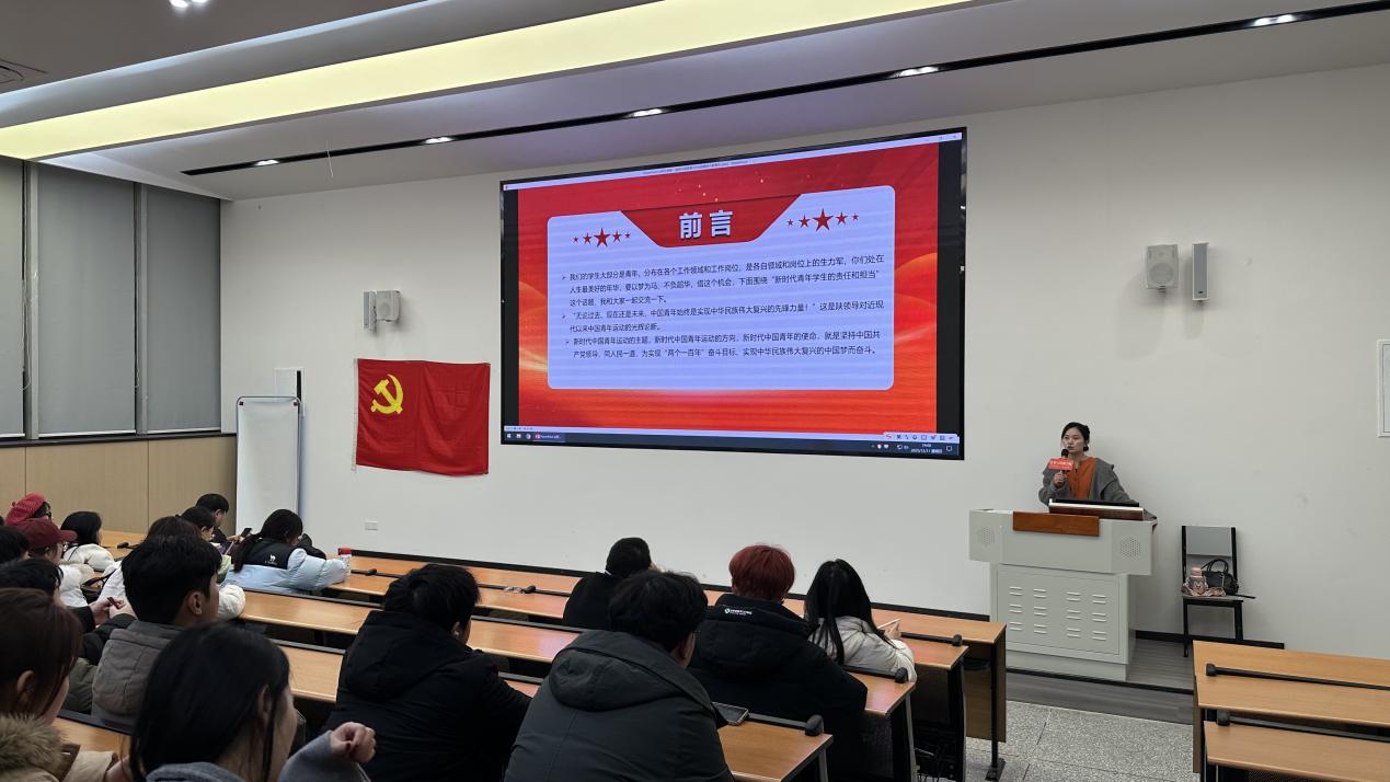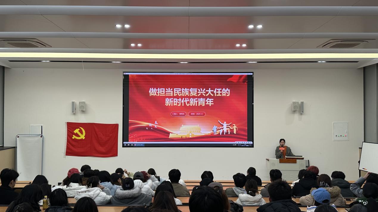 为深入引导青年党员坚定理想信念、明确时代使命,切实增强责任感与担当精神,12月11日,学院学生第二党支部组织开展“做担当民族复兴大任的新时代新青年”主题党课。本次党课由支部宣传委员李伟艺主讲,支部全体党员、发展对象、入党积极分子参会学习。