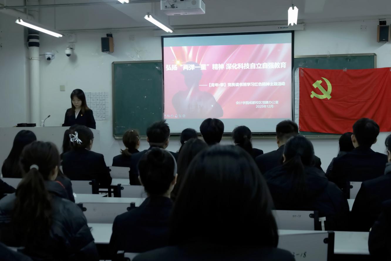 为厚植青年学子爱国情怀,强化科技自立自强意识,筑牢青年学子的思想根基,激发青春担当,2025年12月,会计学院成都校区(西区)党建办公室开展“弘扬‘两弹一星’精神、深化科技自立自强教育”为主题的第六期读书班学习活动,毕业班部分党员、积极分子参与本次活动。