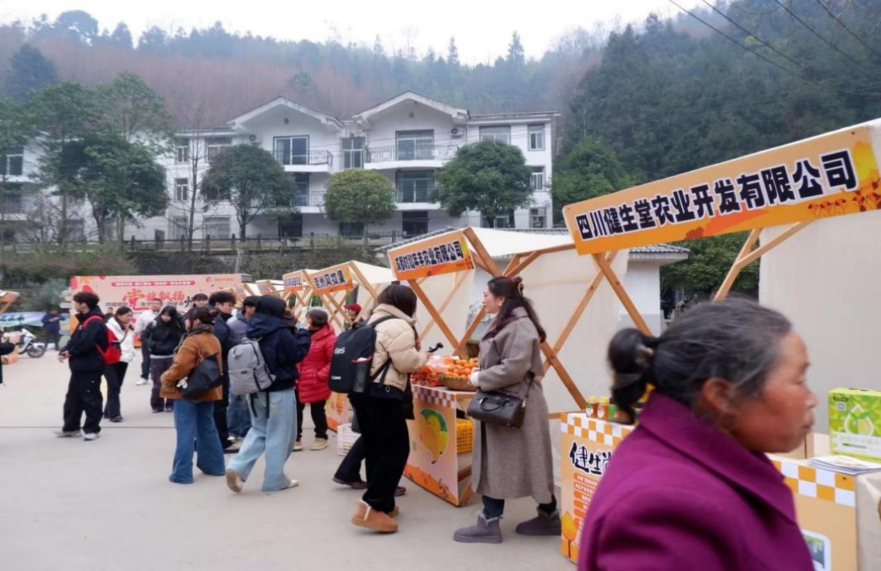 活动现场设置的崇州农产品展区,集中展示了茶叶、猕猴桃等本土特产,企业代表为师生细致讲解产品特色与产业发展历程,搭建起直观了解茶园村产业发展的平台。师生们认真聆听讲解,不时提问互动,深入了解农产品背后的故事。