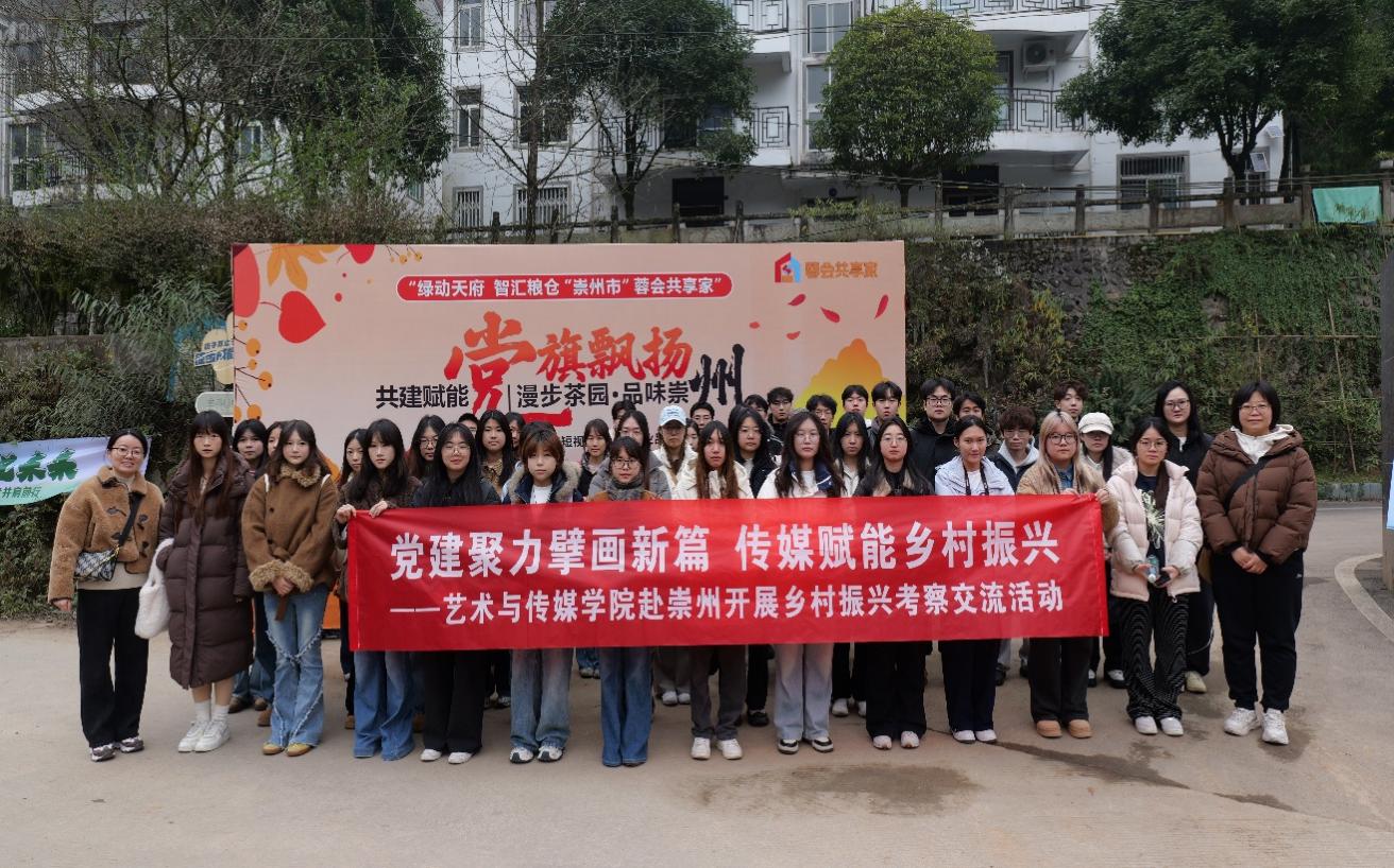 为深入贯彻落实国家乡村振兴战略部署,充分发挥高校人才智力集聚优势与基层党组织战斗堡垒作用,搭建校地合作桥梁。12月19日,艺术与传媒学院分党委副书记林琳,任课教师蒋洁、杨洋,辅导员马岚共同带队,组织五十余名学生赴崇州茶园村开展乡村振兴实践活动。