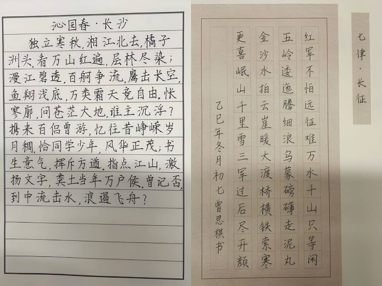 本次活动设置了硬笔书法与毛笔书法两大实践板块。参与者可现场临摹毛泽东诗词书法,亦可围绕《沁园春·长沙》《七律·长征》等经典篇目进行自由创作,选取与历史节点相呼应的诗词名句进行书写。活动现场提供宣纸、笔墨等工具,支持自选字体。硬笔书法作品既支持现场完成,也可于线下指定点位提交。本次活动通过书写实践与沉浸式体验,引导同学们在提笔挥毫间体悟伟人风骨与革命情怀,在纸墨交融中深化对红色精神的理解,实现了传统艺术熏陶与思想政治教育的内在统一。
