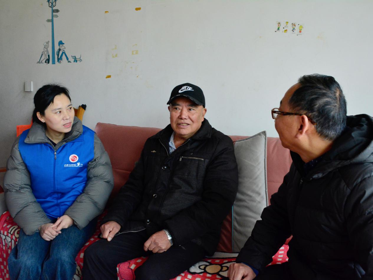 社区主任与辅导员对老人进行慰问