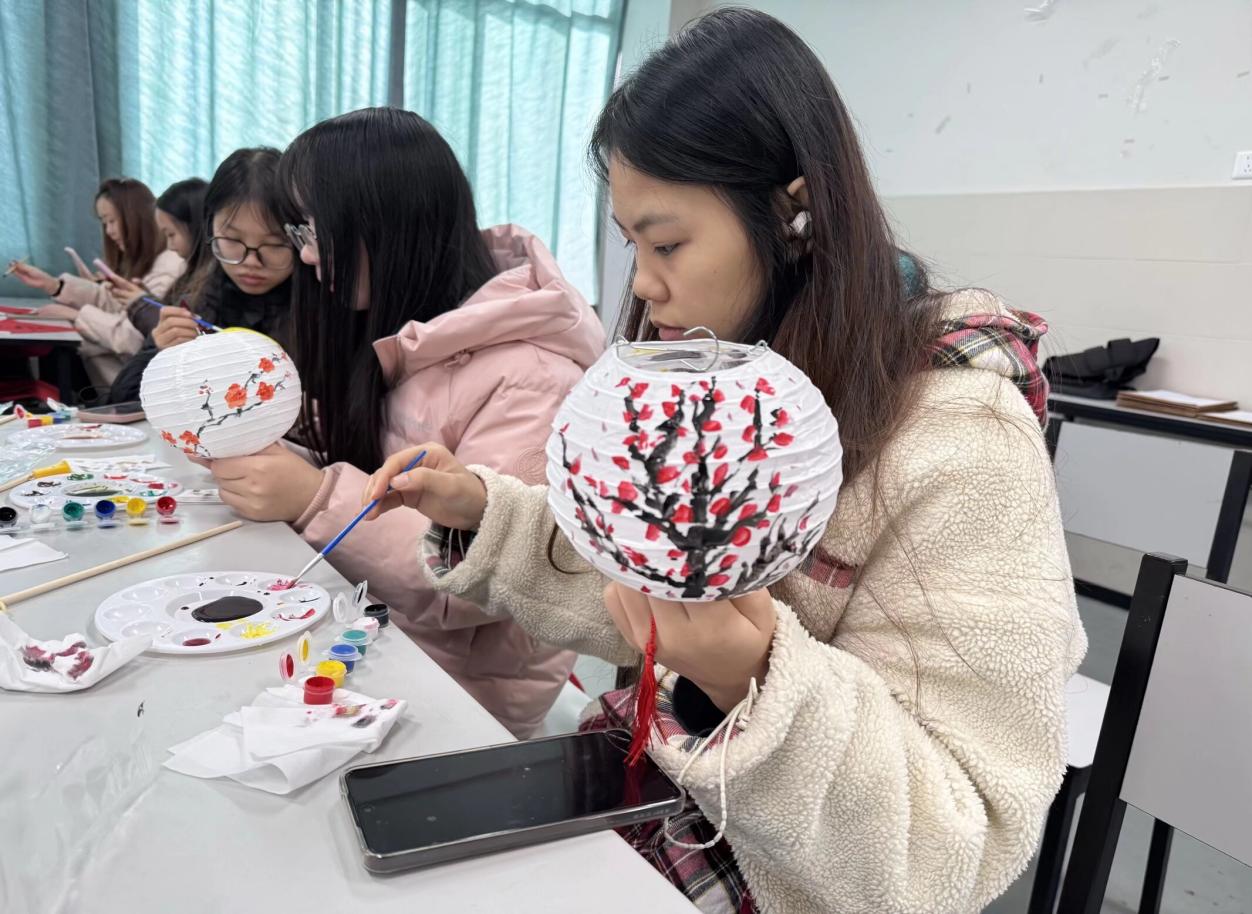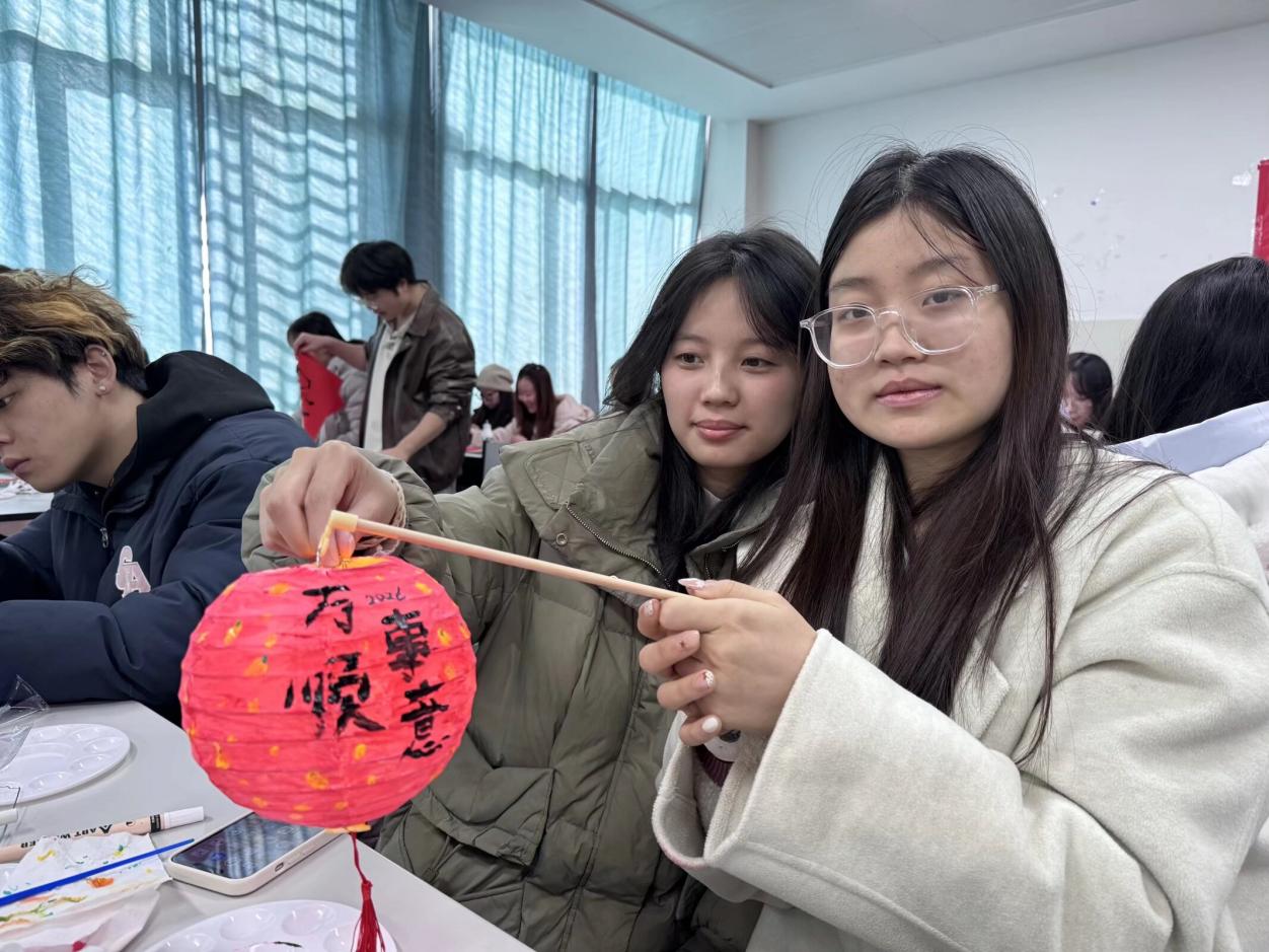 紧接着,新年祈福活动温情启幕,将现场气氛推向高潮。活动现场墨香氤氲、创意满溢,同学们热情参与,以笔墨与巧手传递新春祈愿。在写“福”字环节,大家凝神挥毫,一个个笔力饱满的“福”字跃然纸上,寄托着美好祝福;写对联时,或选取经典,或自创佳句,红纸黑字间情意盎然;绘制灯笼环节,同学们在素白灯面上精心勾画吉祥图案;剪纸活动中,随着剪刀翻飞,栩栩如生的窗花与生肖造型悄然成型,尽显传统技艺的魅力。大家相互展示作品、交流心得,每一件创作都凝聚着对新春的期盼,生动展现了支部的凝聚力与文化活力。