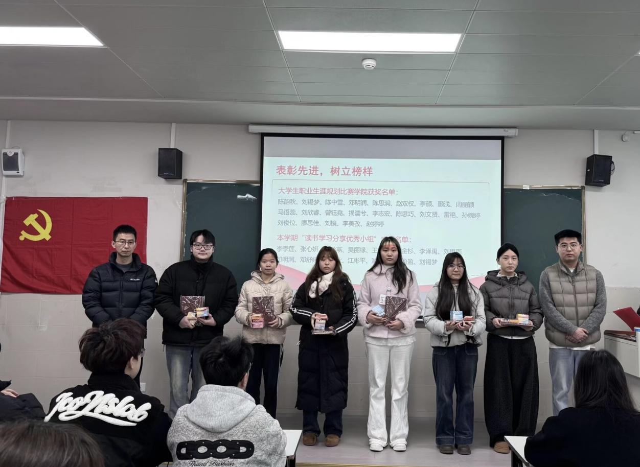 活动伊始,支部书记马岚发表开场讲话,系统回顾了支部秋季学期在思想建设、组织发展、特色活动开展及育人实效等方面的工作情况。随后,会议公示了学院职业规划大赛获奖成员与读书会优秀小组成员名单,支部教师依次为获奖同学颁发了荣誉证书。现场掌声不断,既是对获奖者的祝贺,也是对全体成员的激励。